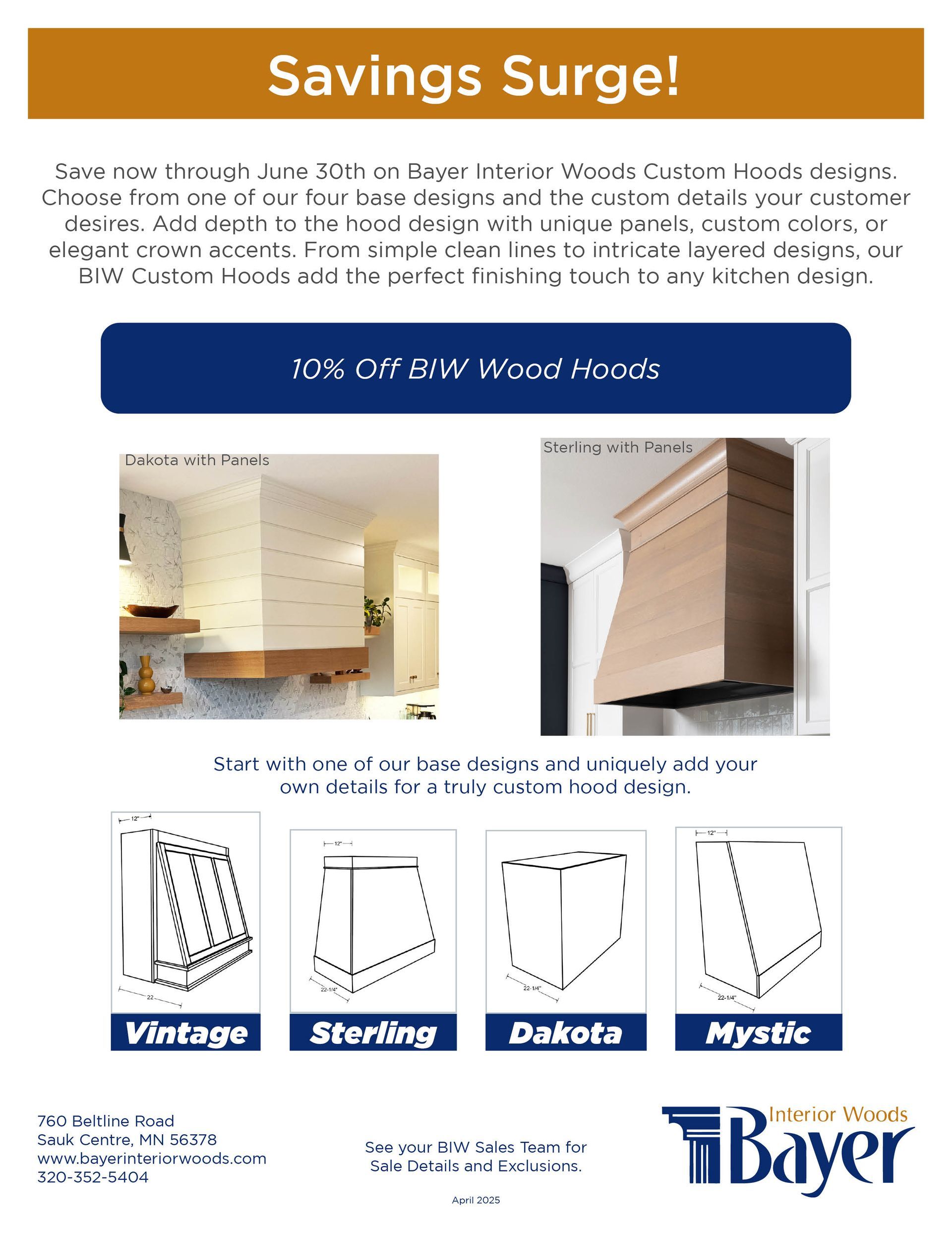 The savings are here! For a limited time save on our Wood Hoods! Seemlessly integrate style and sophistication of a wood hood with your custom cabinetry.
